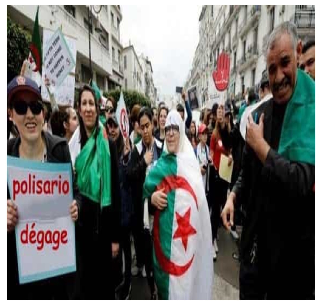 و قد رفع المحتجون خلال هذه المظاهرات، شعارات عكست التطورات المتسارعة التي شهدتها الساحة السياسية هذا الأسبوع، منادين بإحداث القطيعة مع النظام القديم و استبعاد بعض المسؤولين، مع تركيزهم على “الباءات الأربعة” و التي يقصد بها رئيس مجلس الأمة عبد القادر بن صالح و رئيس المجلس الدستوري الطيب بلعيز و رئيس المجلس الشعبي الوطني معاذ بوشارب و كذا الوزير الأول نور الدين بدوي، كما طالبوا من رئيس فريق اركان الجيش احمد قايد باخراج البوليساريو من تيندوف رافعين شعار ” البوليساريو ديكاج”، (الصورة).