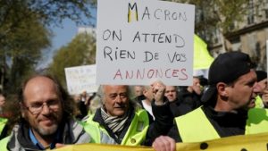 يكشف الرئيس الفرنسي ايمانويل ماكرون اليوم سلسلة اجراءات يعتزم اتخاذها للرد على المطالب السياسية والاجتماعية والاقتصادية للمحتجين من حركة السترات الصفراء الذين يتظاهرون في مختلف انحاء البلاد منذ خمسة أشهر.