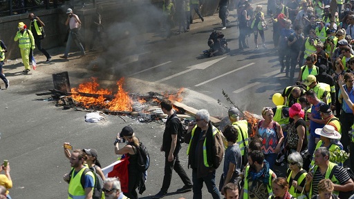 كما توقع قائد شرطة باريس ديدييه لالمان في مذكرة صدرت صباح السبت، اشتبكت عناصر الشرطة الفرنسية مع عدد من محتجي “السترات الصفراء” في قلب العاصمة الفرنسية. وقالت الشرطة التي استخدمت الغاز المسيل للدموع وقنابل الصوت إنها اضطرت إلى دفع المتظاهرين باتجاه ساحة الجمهورية وهو المكان المسموح بالتظاهر فيه حاليا.