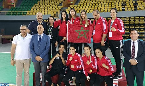 وأحرزت الميداليات الذهبية الخمس الملاكمات رباب حضار (وزن 48 كلغ) وياسمين متقي (وزن51 كلغ) وأميمة الوالي العلمي (وزن 54 كلغ) وشيماء الراضي (وزن 64 كلغ) وأميمة بلحبيب (وزن 69 كلغ) ليتقدم الفريق المغربي على نظيريه الجزائري والكاميروني اللذين أحرزا الميداليات الثلاث المتبقية.