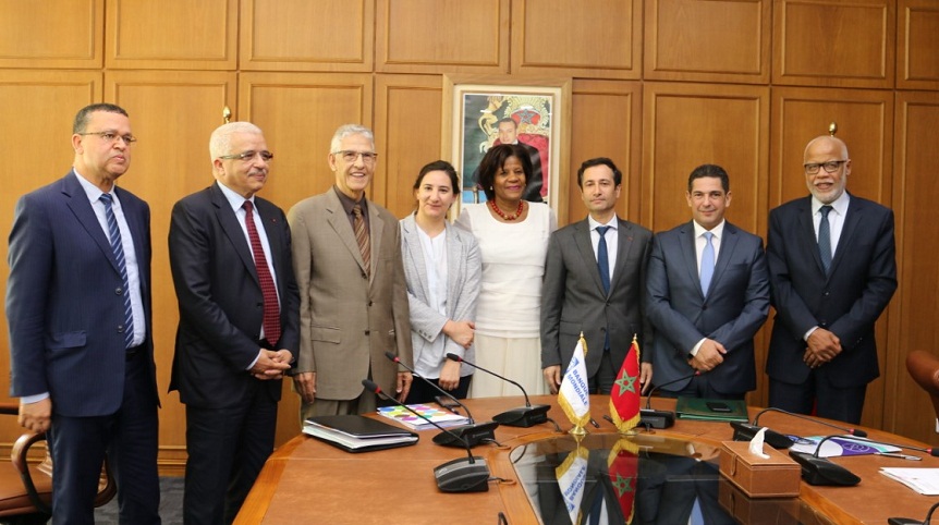 أشرف السيد محمد بنشعبون، وزير الاقتصاد والمالية، والسيدة ماري فرانسواز ماري نيلي ، المديرة لمنطقة المغرب العربي ومالطا، الشرق الأوسط وشمال أفريقيا بالبنك الدولي للإنشاء والتعمير، وبحضور السيد سعيد أمزازي،وزير التربية الوطنية والتكوين المهني والتعليم العالي والبحث العلمي، والسيد محمد يتيم، وزير الشغل والادماج المهني، والسيد لحسن الداودي،الوزير المنتدب لدى رئيس الحكومة المكلف بالشؤون العامة والحكامة، والسيد محمد دردوري، الوالي المنسق الوطني للمبادرة الوطنية للتنمية البشرية، والسيد عبد المنعم المدني، مدير الوكالة الوطنية لانعاش التشغيل و الكفاءات،على توقيع اتفاقية القرض المتعلق بمشروع “دعم الادماج الاقتصادي للشباب بالمغرب”، وذلك يوم الاربعاء 29 ماي 9201 بالرباط.