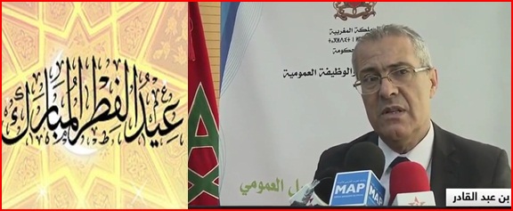 أعلنت وزارة إصلاح الإدارة والوظيفة العمومية، اليوم الاثنين، أنه تقرر أن تعطل عن العمل، بصفة استثنائية، الإدارات العمومية والجماعات الترابية والمؤسسات العمومية، يوم الجمعة 7 يونيو 2019، علاوة على عطلة العيد، وذلك في حالة ما إذا كان فاتح شوال هو يوم الأربعاء (05 يونيو 2019).