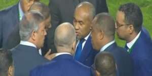 وبعد توقف طويل للمباراة ، ارتأى الحكم الغامبي اعلان فريق الترجي التونسي فائزا.