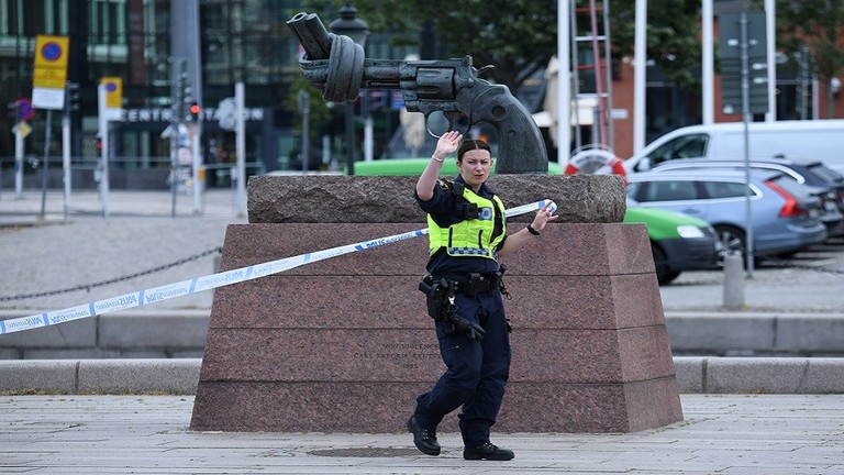 وقال المتحدث باسم الشرطة المحلية بير أولف سويست في مؤتمر صحفي: “لقد تصرف الرجل بطريقة تنطوي على تهديد، وكان يحمل حقيبتين كبيرتين بيديه، ويصرخ أن فيهما قنبلة وأسلحة، فقررنا تحييده”.