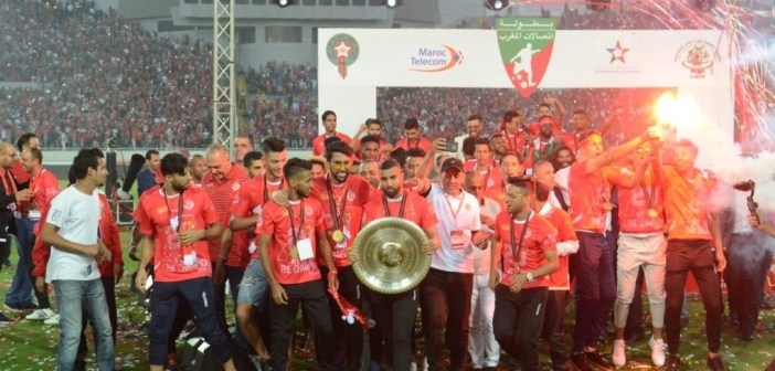 ورفع العميد ابراهيم النقاش درع البطولة، أمام هتافات أنصار الفريق، معلنا التتويج الرسمي للفريق، حيث تسلم باقي لاعبي الوداد وطاقمه التقني والإداري ميداليات اللقب فوق منصة أعدت للحفل. وأضفى جمهور الوداد أجواء خاصة على احتفالية تتويج فريقه برفع “تيفو” يخلد اللحظة ويبرز وفاءه تجاه المجموعة الودادية، مرددا بالمناسبة أناشيد احتفاء باللاعبين. وتمكن فريق القلعة الحمراء ، تحت قيادة مدربه التونسي فوزي البنزرتي، من حسم لقب بطولة موسم 2018/2019 بعد أن حصد 59 نقطة من 17 فوزا و ثمانية تعادلات وخمس هزائم،محرزا 56 هدفا فيما تلقت شباكه 26 هدفا.