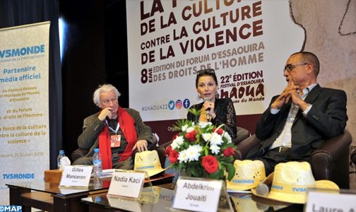 أما مؤرخ التاريخ الكولونيالي الفرنسي، جيل مونصرون، فأكد أن الدلالة اللفظية لمهرجان كناوة وموسيقى العالم “هامة للغاية”، مشيرا إلى أهمية الموسيقى في كل بلد، لاسهامها في بلورة شخصيته، ومعتبرا أن العنف مرده غالبا التفاوتات وغياب العدالة.