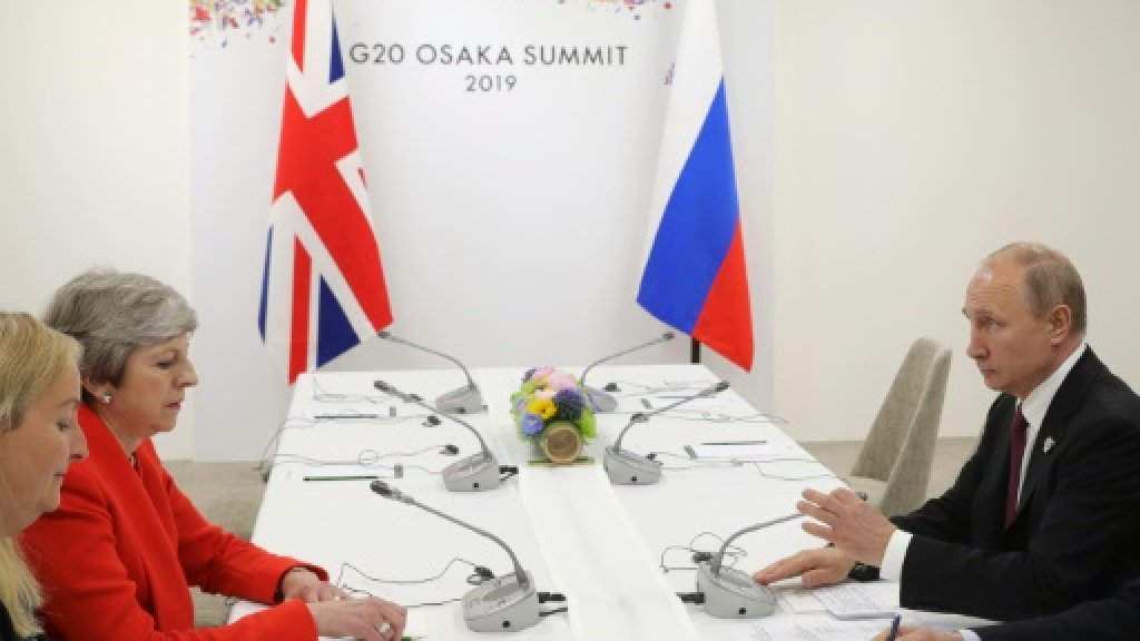 والاجتماع هو الأول بين بوتين وماي منذ تسميم الجاسوس الروسي السابق سيرغي سكريبال في عام 2018 على الأراضي البريطانية.