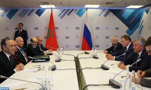 شكل تعزيز التعاون بين المغرب وروسيا ،من خلال استكشاف مشاريع جديدة ذات الاهتمام المشترك، محور المحادثات ، التي جرت اليوم الاثنين في موسكو ، بين رئيس مجلس النواب السيد الحبيب المالكي و رئيس مجلس الدوما الروسي ، فياتشيسلاف فولودين ، ونائب رئيس مجلس الاتحاد الروسي ، إلياس أوماخانوف.