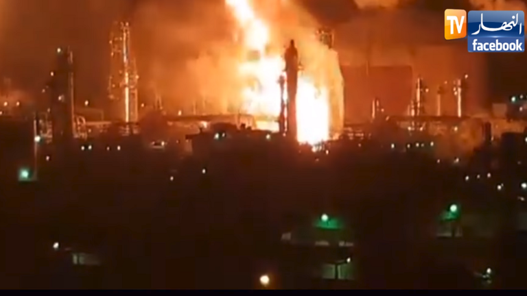 نشب حريق هائل بالمنطقة الصناعية لشركة إنتاج الغاز المسال ” GNL2″ التابعة لشركة سوناطراك للمحروقات في وهران، أكبر المدن الجزائرية.
