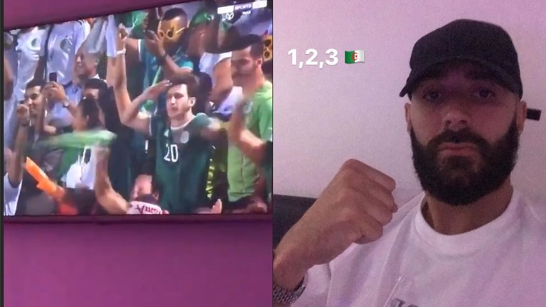 ونشر بنزيما على حسابه في “إنستغرام” عبر خاصية “ستوري” مجموعة فيديوهات أثناء متابعته لمنتخب الجزائر وتفاعله مع هجمات “الخضر”، مظهرا دعمه وتشجيعه للاعبين.