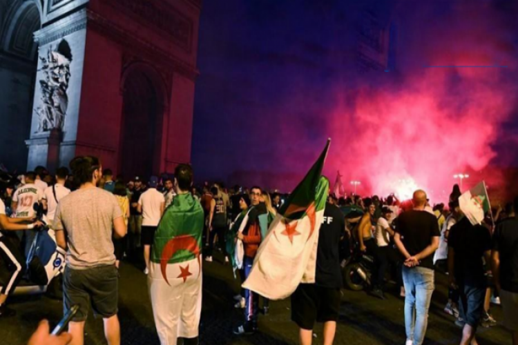 فبعد دقائق قليلة على إطلاق الحكم لصفارة انتهاء المباراة وإعلان فوز الجزائر، نزل الآلاف من مشجعي المنتخب الجزائري إلى الشوارع في عدة مدن فرنسية، وعلى رأسها باريس ومرسيليا وليون.