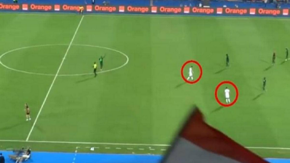 إلا أن الكاميرا رصدت مساعد مدرب المنتخب الجزائري وهو يعترض طريق اثنين من لاعبي الخضر ويمنعهم من الخروج من الملعب، ويدفعهم إلى البقاء في نصف ملعب المنتخب النيجيري.