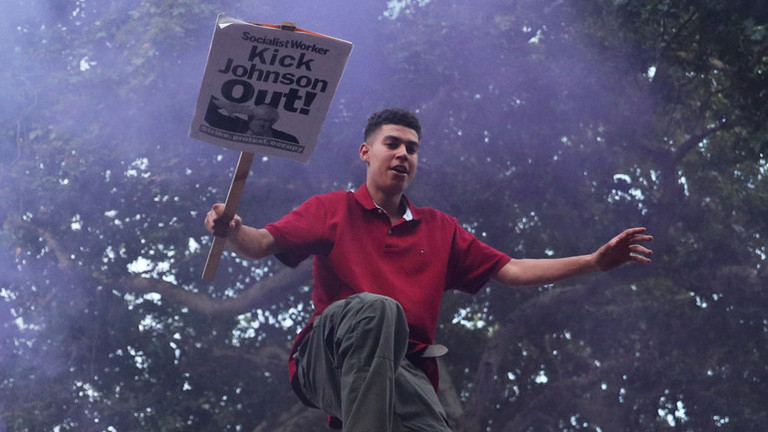 احتشد مئات الأشخاص مساء أمس الأربعاء بالقرب من مقر رئيس الحكومة البريطانية، وسط لندن، للاحتجاج على سياسة رئيس الوزراء الجديد بوريس جونسون.